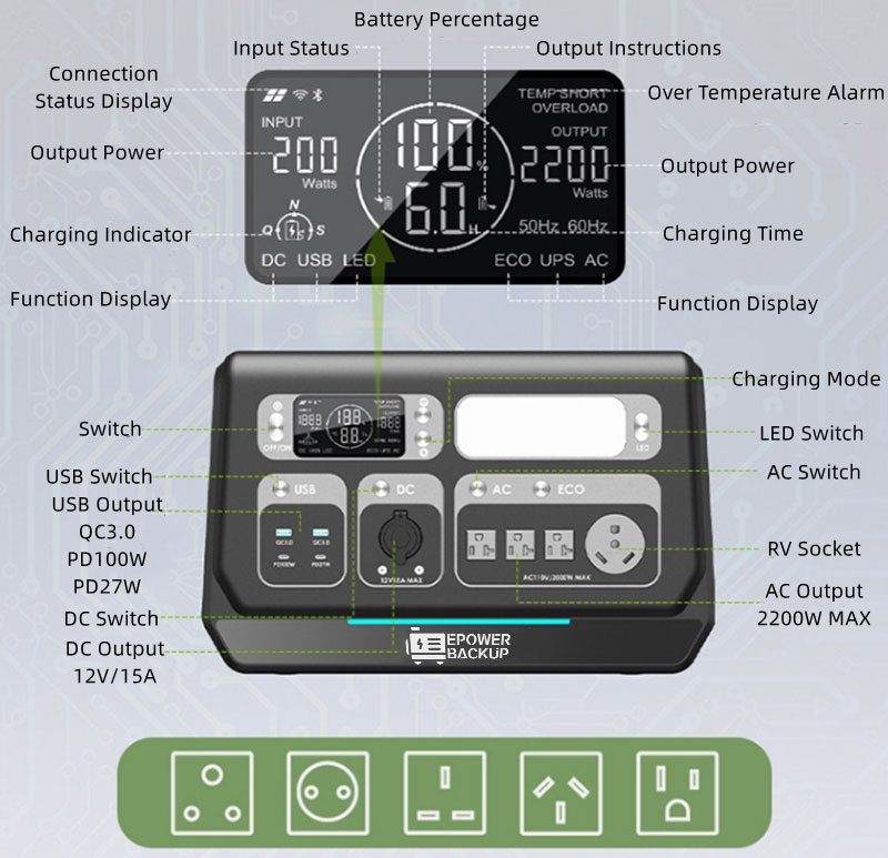 It adopts pure sine wave output technology to ensure the stability and quality of power output. It is suitable for various electrical equipment and does not damage electrical equipment, such as lamps, electric stoves, hair dryers, projectors, electric fans, etc. This wide applicability makes the product an ideal power solution for homes and offices.